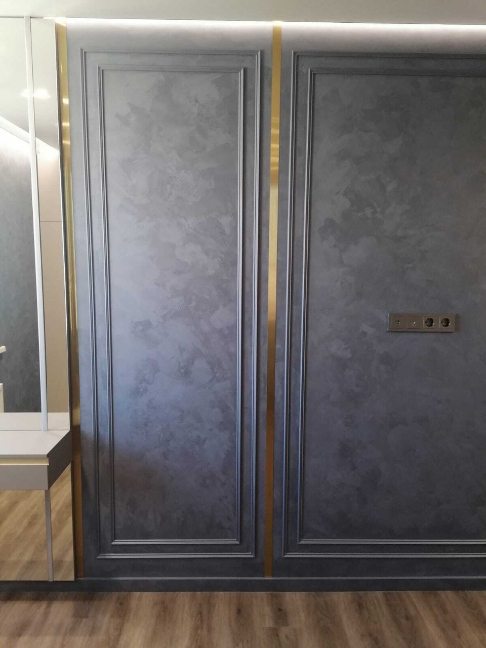 - Шлифованная (матовая/сатинированная): благородная текстура, практичная в уходе, скрывает мелкие загрязнения.