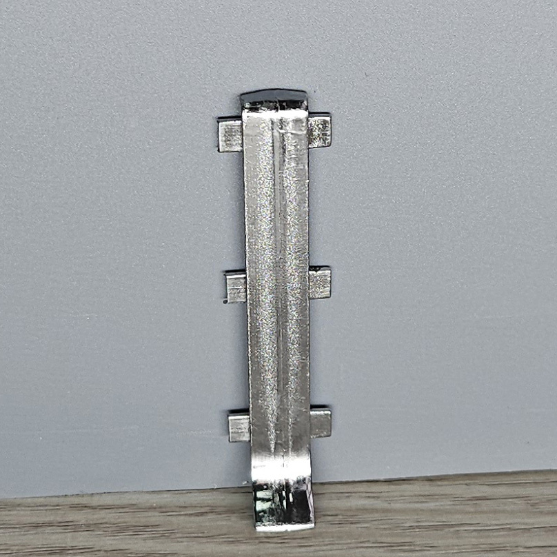 Альтернативный способ монтажа: Если по каким-либо причинам использование ПВХ-фурнитуры нежелательно (например, требуется абсолютно монохромный вид), стыковка плинтуса производится методом запила под 45 градусов. Эту операцию клиент выполняет самостоятельно на объекте с помощью УШМ (болгарки) или торцевой пилы. Такой подход позволяет добиться идеального примыкания планок на углах без использования дополнительных элементов.
