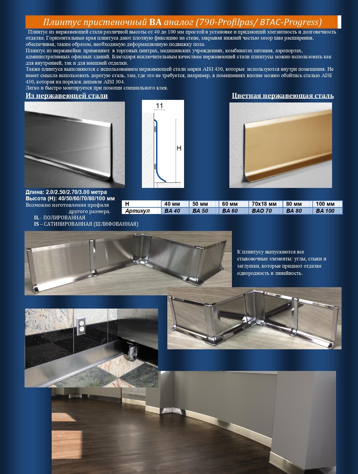 *Для совершения заказа BA60 IS Плинтус 60мм нержавеющая сталь шлифованная 2.7м необходимо выслать письмо запрос на почту all-profiles@mail.ru, или номер WhatsApp